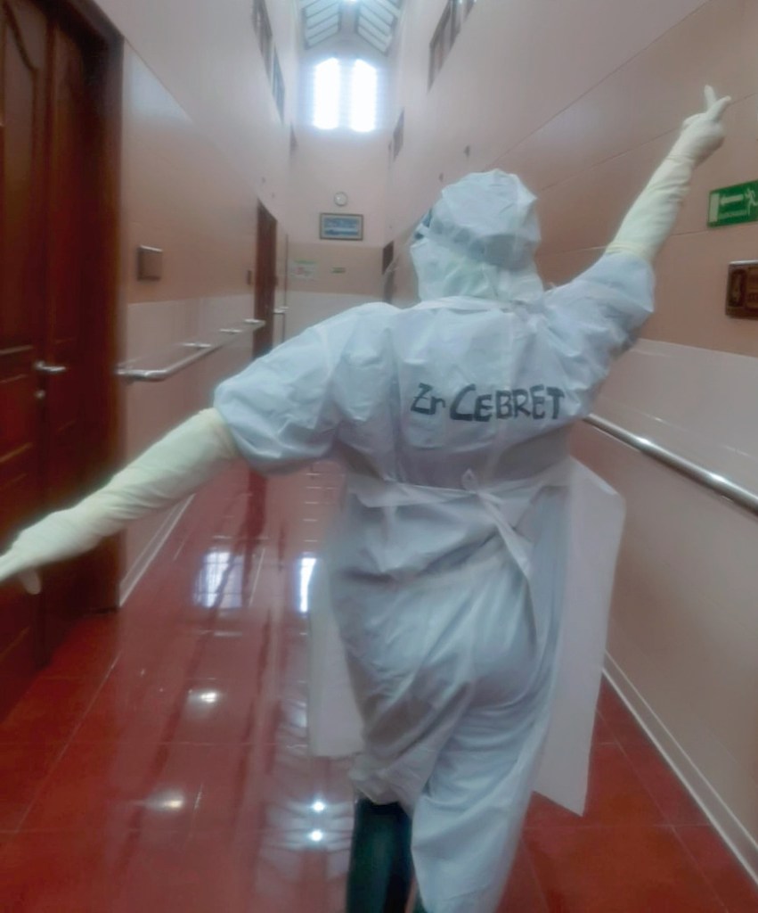 Hazmat dan masker itu menutupi seluruh badanmu. Dari ujung kaki sampai ujung kepala semua tertutup … dalam suatu masa