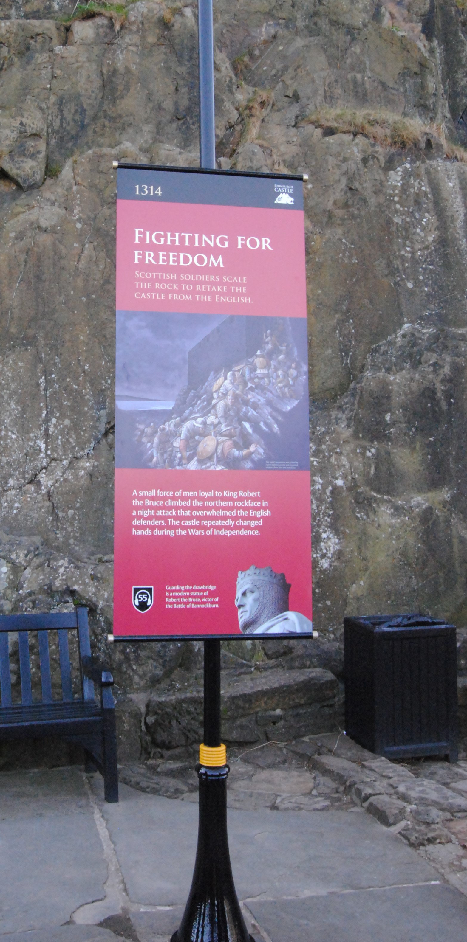 Salah satu semboyan Fighting for freedom (1314) terasa menonjol saat aku membaca deretan semboyan mengenai sejarah Kastil Edinburgh. Kebebasan untuk mengatur hidupnya sendiri, lepas dari aturan Kerajaan Inggris adalah misi Wallace saat itu. Namun, para bangsawan/ningratnya Skotlandia masih tercerai berai ditambah prajurit Kerajaan Inggris terlalu kuat sehingga perjuangan Wallace tidak berhasil. Sampai sekarang Skotlandia masih berada di bawah persemakmuran Kerajaan Inggris.