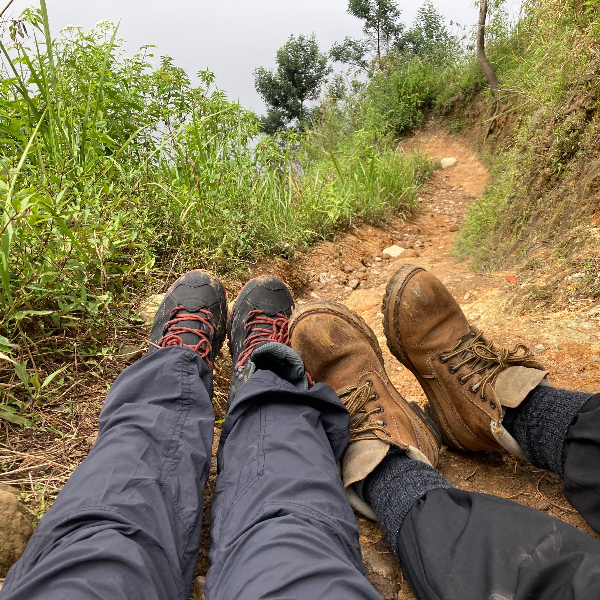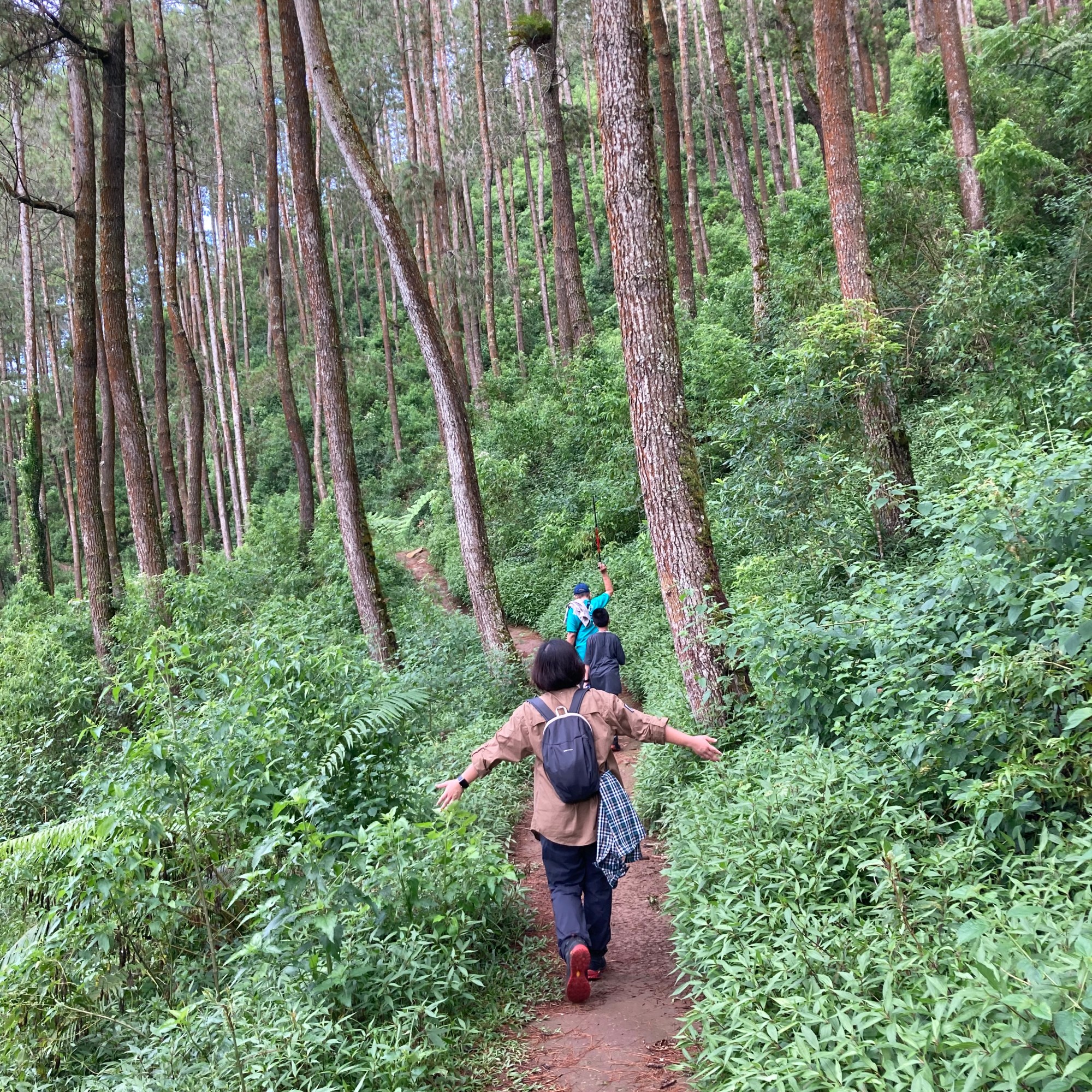 Setengah jam berlalu, hujan mulai berkurang intensitasnya. Dari arah puncak datang empat pendaki turun dan menyapa kami. Makces, begini ya rasanya ketemu manusia selain rombongan kami. Senyum ramah tergambar di muka para pendaki tersebut. Mereka memberikan semangat pada kami untuk terus berjalan menuju puncak.