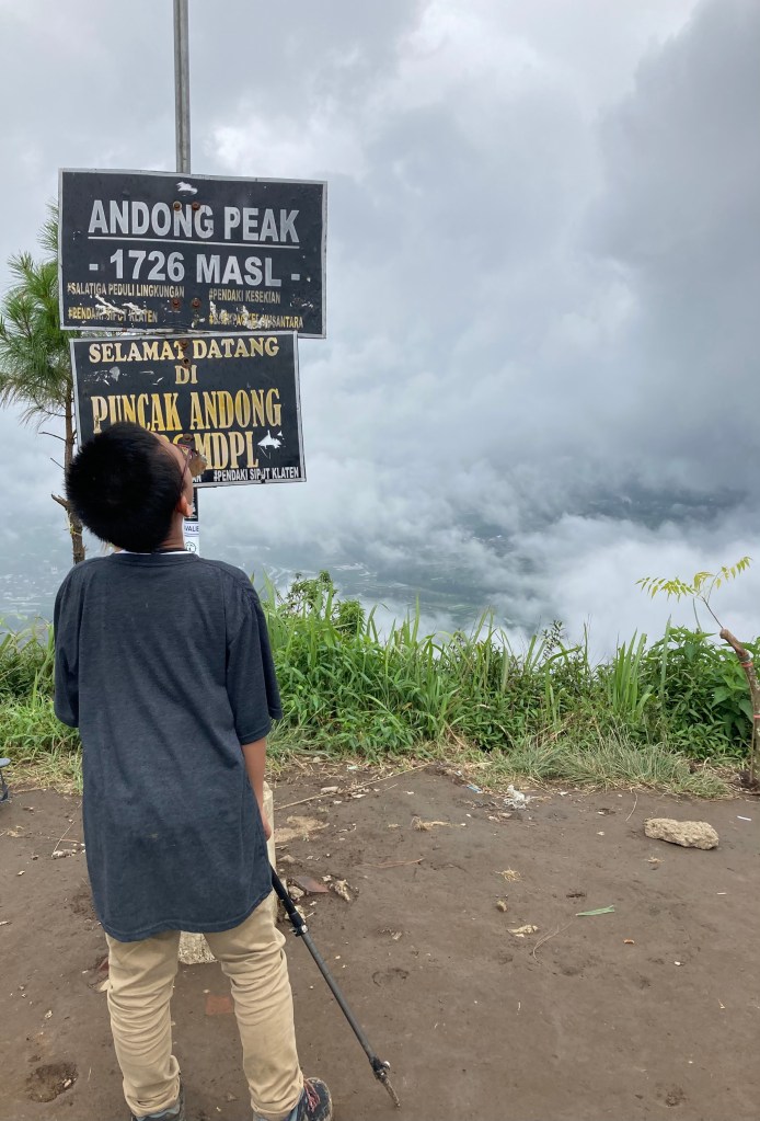 Aku berbisik pada Tuhan, Duh Gusti, aku nyesel. Ternyata kalau sepi begini, serem juga di atas gunung. Siapa yang akan menemukan kami kalau kenapa-napa? Bapakku dan suami terlihat santai dengan situasi ini karena mereka terbiasa dengan pekerjaan mereka. Aku? Anak pedesaan yang pernah mendaki Gunung Turgo dan Gunung Nglaggeran namun tingginya di bawah 1000 meter. Satu gunung tinggi yang kudaki adalah Gunung Ijen namun Gunung Ijen adalah kawasan wisata dimana pendaki bisa menaiki gerobak belerang untuk sampai puncak. Bahkan bertemu ratusan orang dalam proses pendakiannya. Gunung Andong ini adalah pertama kalinya aku mendaki gunung dalam arti yang sebenarnya.