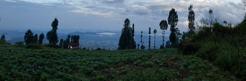 Kembali ke Gunung Prau, sebuah pendakian tanpa rencana bermodalkan kenekatan dan keyakinan. Jadwal hari itu selesai berdoa di Rawaseneng kami lanjut ke Dieng. Paksu menawarkan pendakian tek tok ke Gunung Prau. Kebetulan dia sudah pernah ke sana. Berhubung bulan Desember dan hujan masih sering turun, maka aku berdoa pada TuhanYesus kalau cuaca cerah kami akan mendaki, tapi kalau hujan ya kami keliling di Dieng saja. Doaku malam itu. Dan paginya doaku terjawab. Langit biru dan kami semangat mendaki ditemani oleh Pak Santo, seorang pemandu Gunung Prau yang berdomisili di daerah Dieng.
