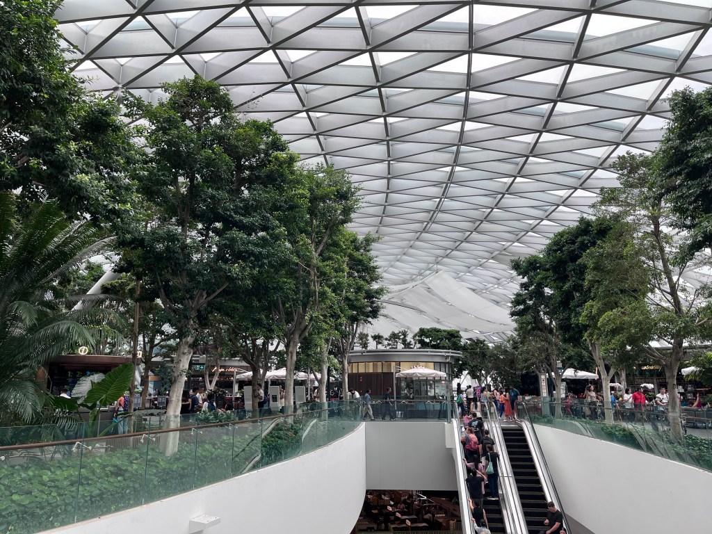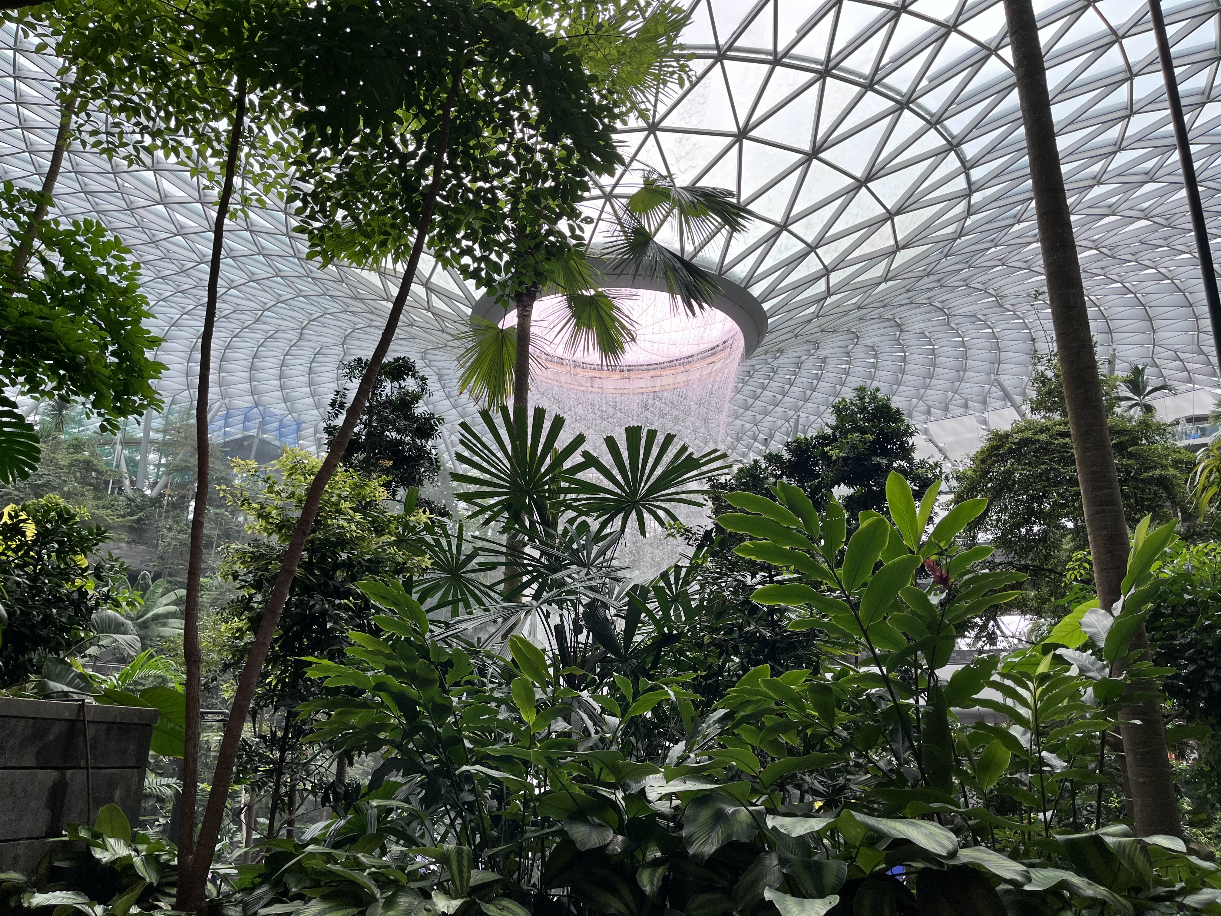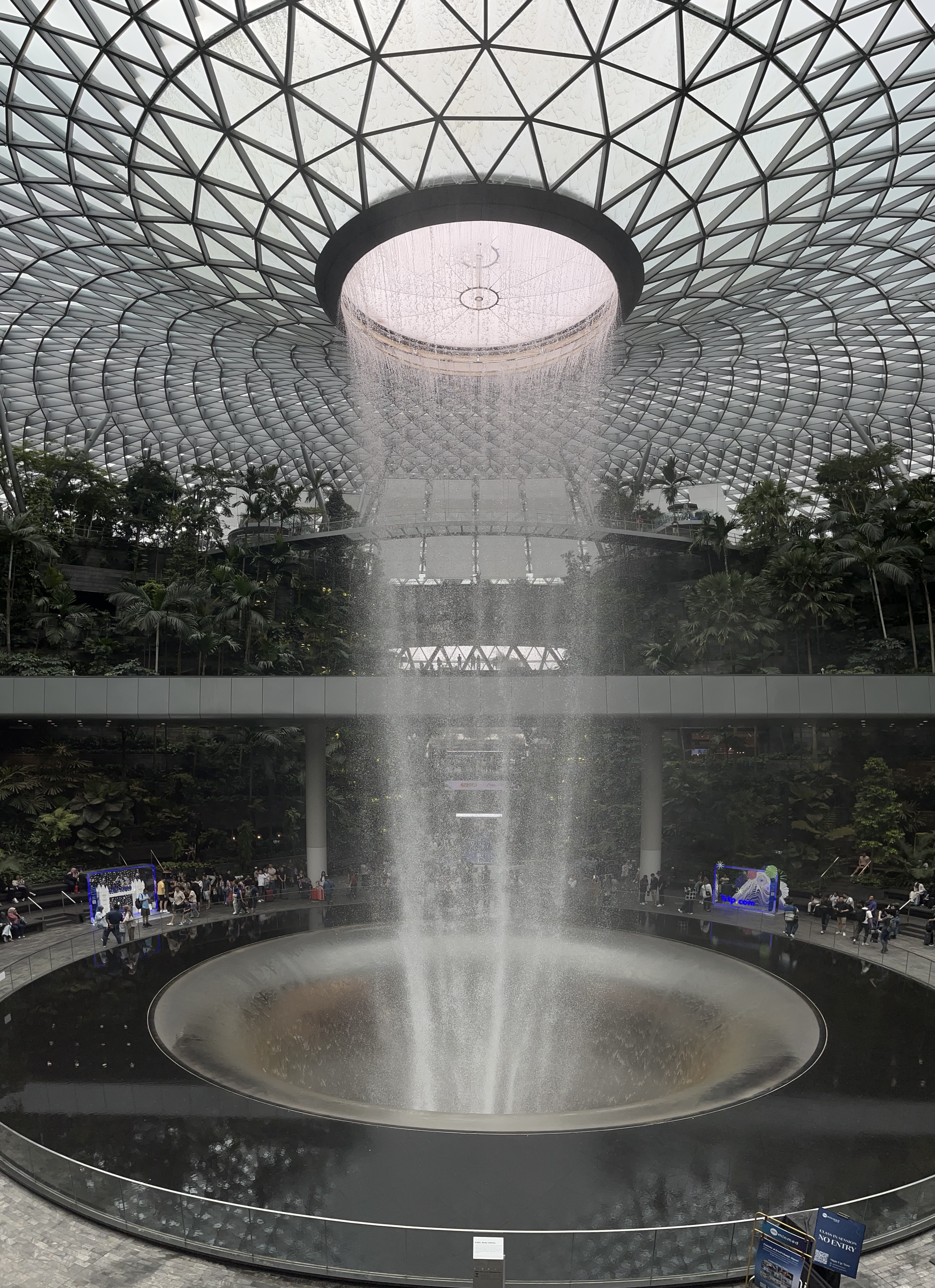 Jewel adalah air terjun setinggi 40 meter yang berada di dalam bandara Changi. Letaknya tepat dalam sebuah mall yang terkoneksi dengan terminal bandara. Jadi selama menunggu jam keberangkatan pesawat, pembaca bisa keliling mall sambil memandang keindahan Jewel. Airnya mengucur deras masuk dalam sebuah cawan raksasa yang seolah menampung air tersebut. Aku berimajinasi cawan Jewel ini menyerupai portal masuk ruang waktu. Kami naik sampai ke lantai atas dan makin kagum dengan banyaknya pepohonan hidup yang tumbuh subur mengelilingi air terjun. Pembaca, jangan lupa meluangkan waktu untuk menaiki kereta yang lewat tepat di samping air terjun supaya bisa berimajinasi selama 30 detik berada di negeri dongeng, Avatar.