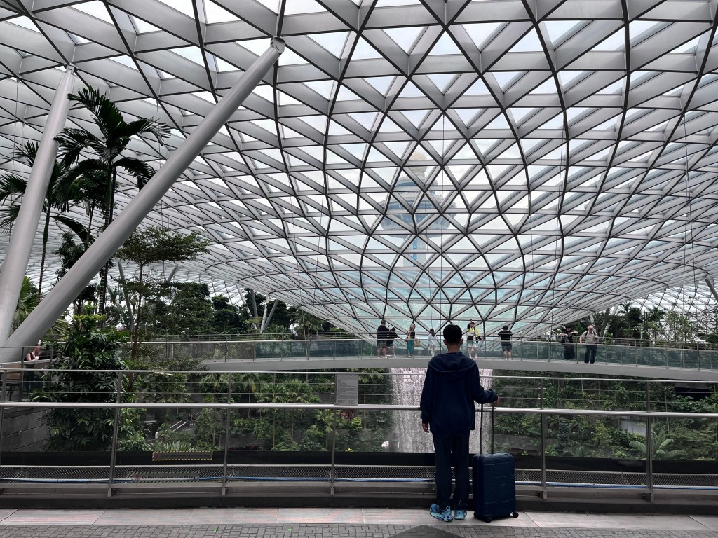 Begitu mendarat di Bandara Changi, kami langsung mengantri pada lajur bis yang akan membawa ke Terminal 1 tempat lokasi Jewel. Pastikan koper yang dibawa jangan terlalu besar ya. Jika terlalu besar menurutku bakal repot saat naik turun kendaraan umum. Catatan bagi simbok, harus menyetting pikiran. Kebiasaan bikin itinerary: 2 jam disini ya kemudian 1 jam perjalanan menuju spot selanjutnya. Sampai di spot selanjutnya acara bebas 2 jam ya bla bla bla… kunci rapat dalam tas. Berkelana kali ini, waktu ditentukan oleh anak.