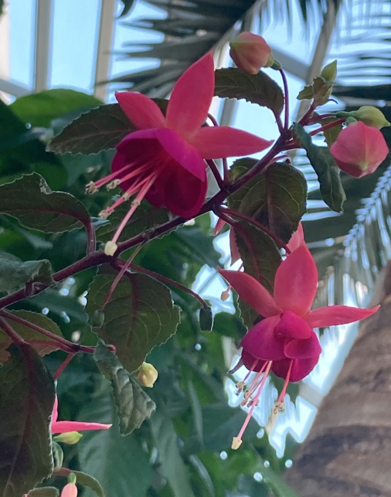 Ada satu bunga yang masih aku ingat yaitu Hardy fuchsia, tanaman bunga dari Amerika Selatan. Keunikan bentuk bunganya mengingatkanku pada anting-anting pengantin suku Bugis dan Makasar. Bunga berwarna merah burgundy ini memiliki tiga kelopak mekar untuk memayungi kelopak lain yang saling berpelukan membentuk mangkuk. Di ujung mangkuk tersebut ada rangkaian benang sari yang memanjang seperti bunga sepatu. Bedanya bunga sepatu hanya memiliki satu benang sari, sedangkan Hardy fuchsia bisa memiliki 7 benang sari. Bentuk daunnya mirip sekali dengan daun bunga sepatu. Kecil dengan banyak gerigi di ujungnya. Namun, mereka berbeda family. Hardy fuchsia adalah family Onagraceae disebut sebagai keluarga bunga sedangkan Hibiscus rosa-sinensis (bunga sepatu) adalah family Malvaceae disebut sebagai keluarga kapas. Sudah sampai sini ya penjelasannya. Aku ngeri-ngeri sedap kalau menyerempet ke ilmu sains.