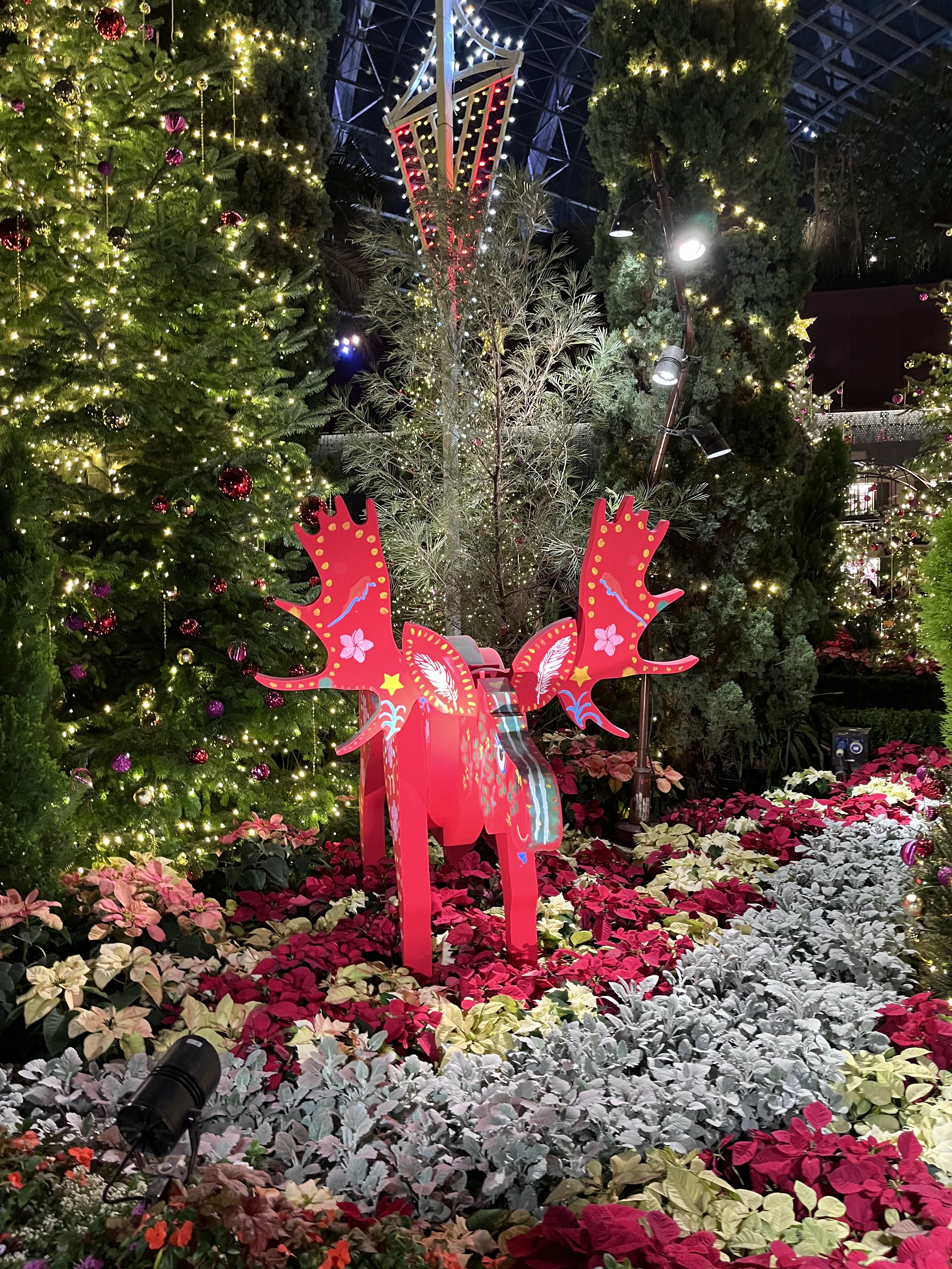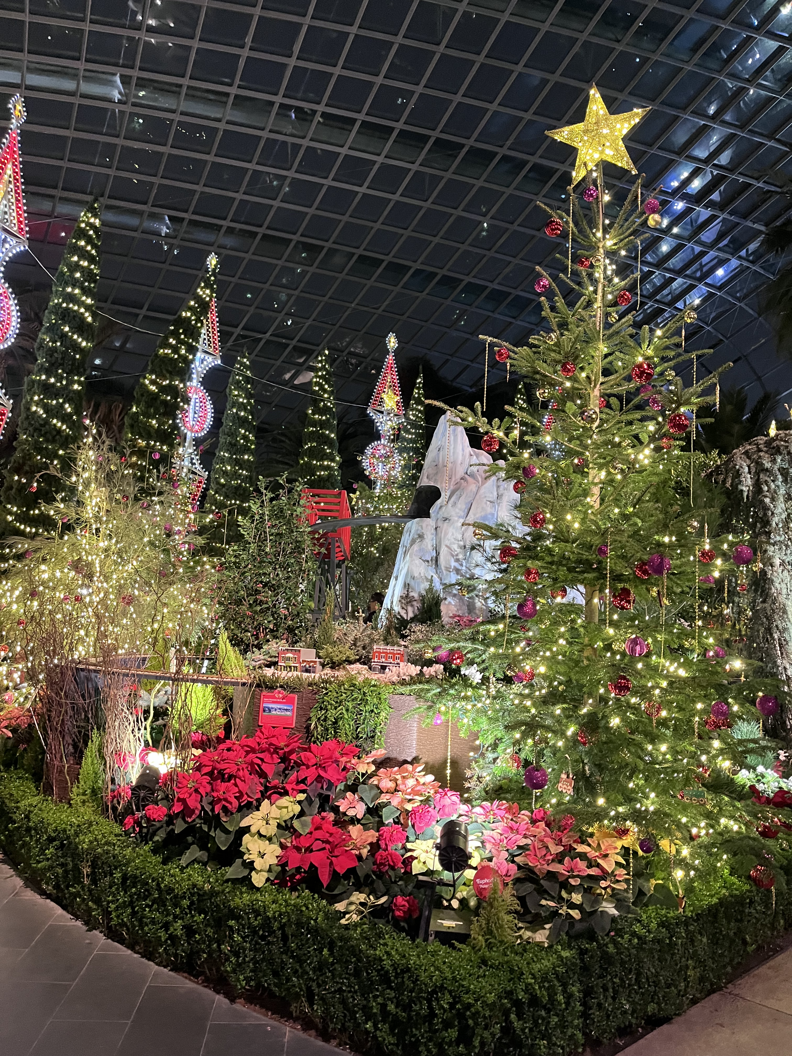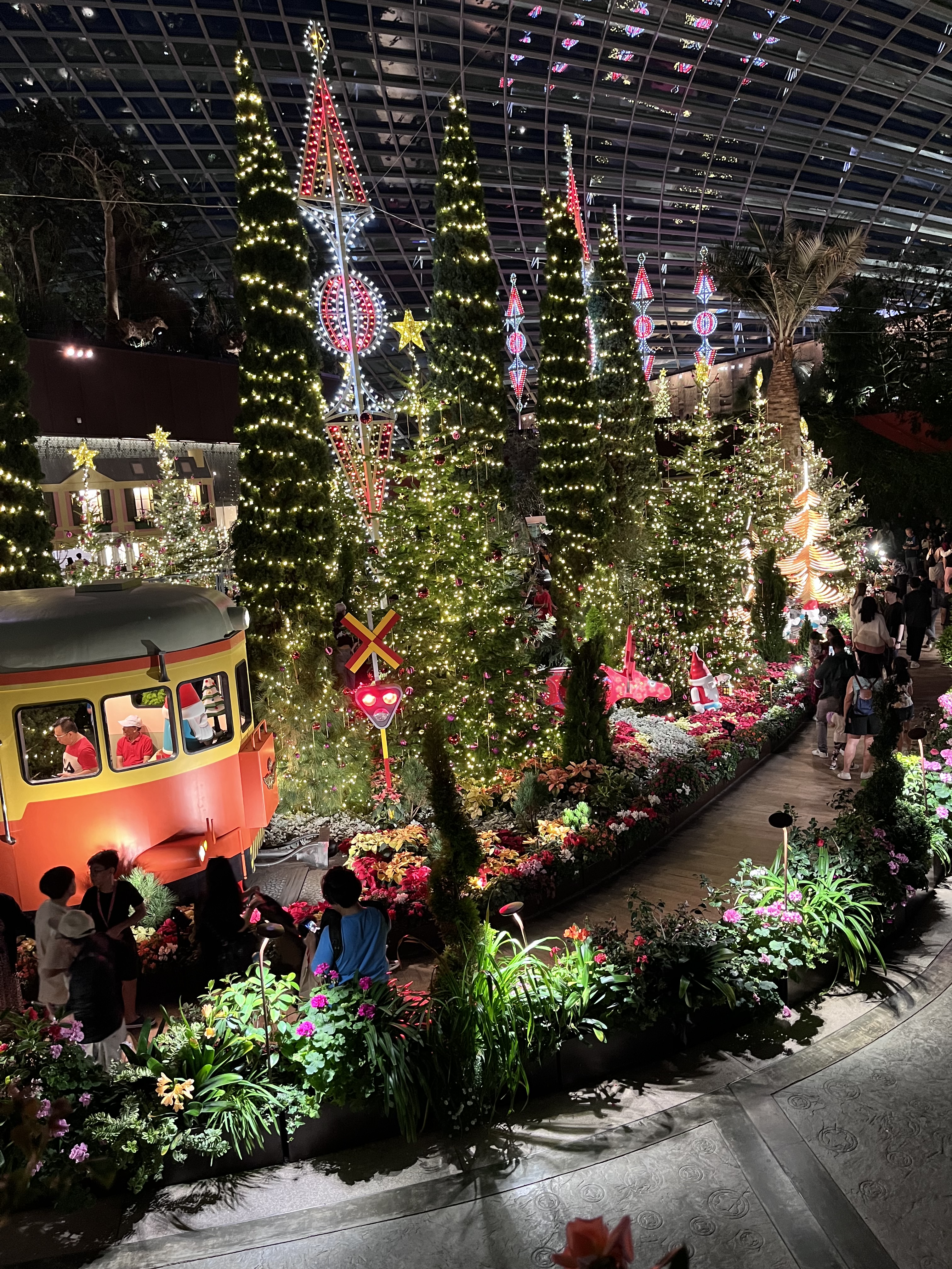 Tema Flower Dome di bulan Desember 2024 ini adalah rangkaian pohon natal dan kereta api dari Stockholm. Puluhan pohon cemara menghiasi. Mereka jago membuat miniatur dari sudut kota sehingga pembaca bisa berkhayal seolah berada di dalam gerbong kereta Stockholm. Temperatur suhu pun menyesuaikan, semakin malam semakin dingin. Lampu-lampu mulai menyala.