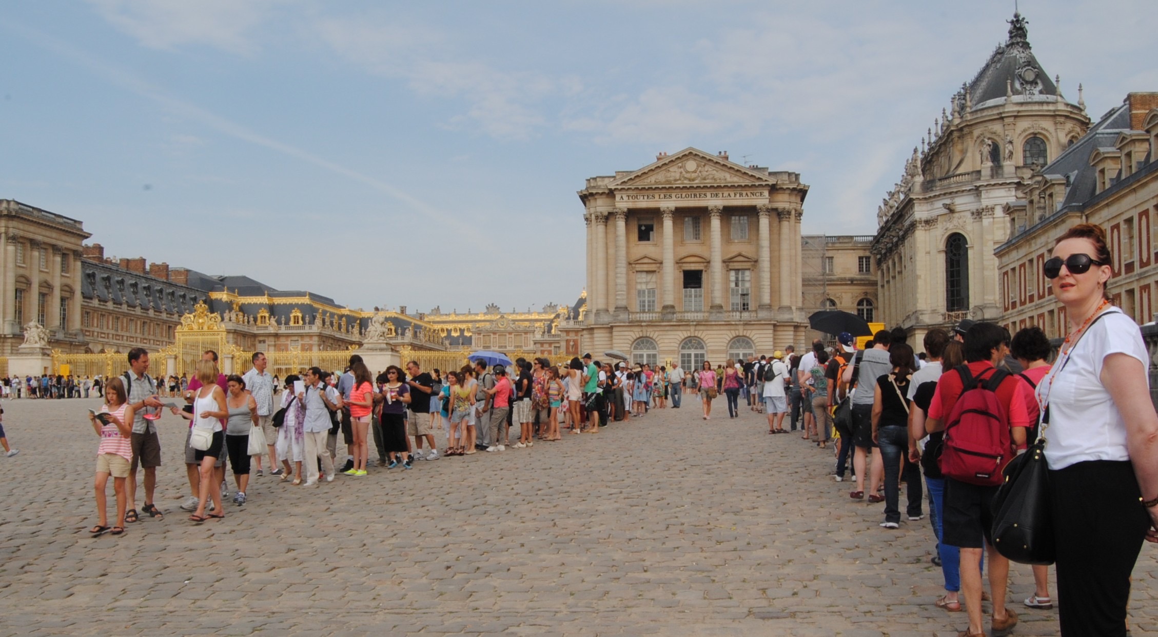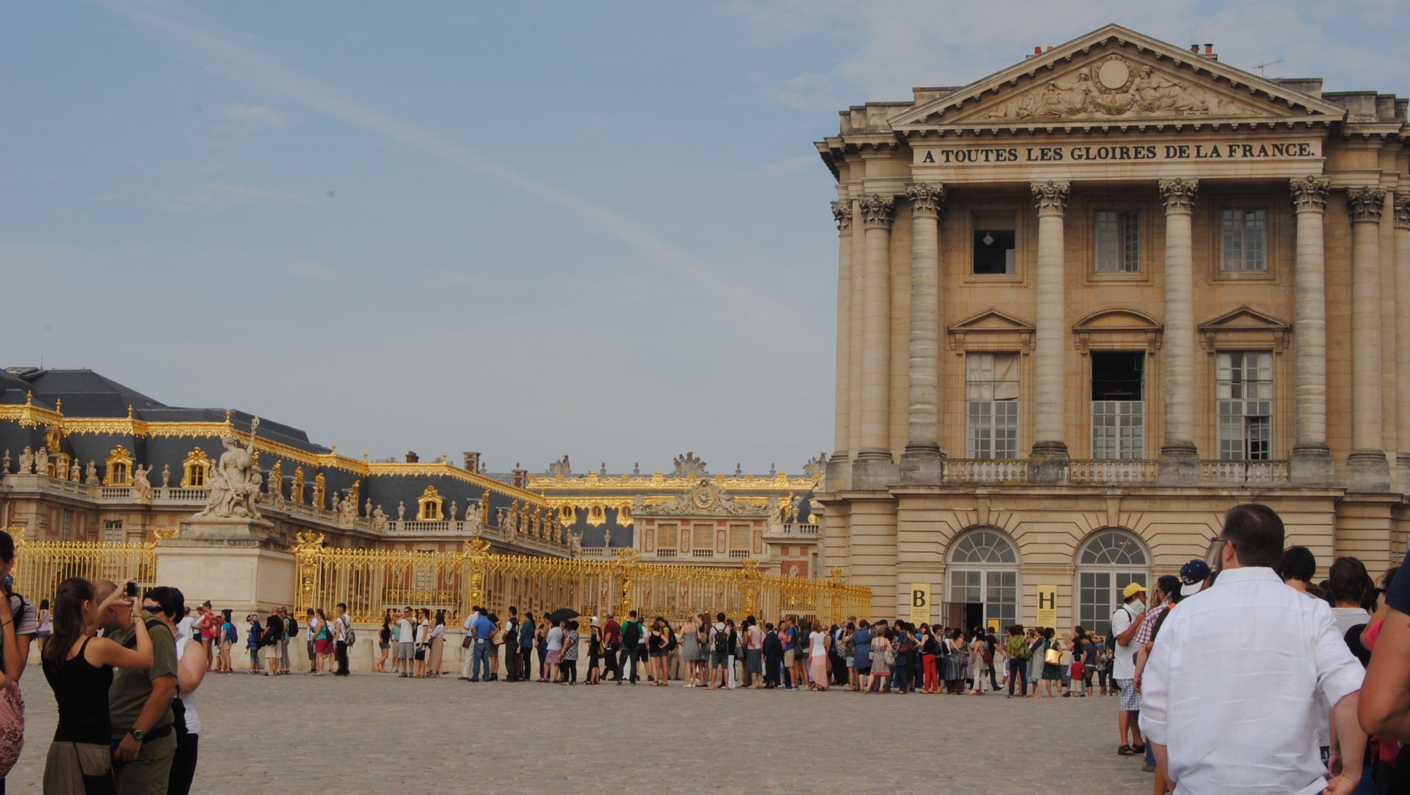 Istana itu adalah Versailles. Aku teringat pernah membaca komik Jepang berjudul Rose of Versailles (Lady Oscar). Ternyata bacaan itu turut andil menetap di pikiran. Istana Versailles adalah salah satu awal mula perjalanan Prancis menuju pemahaman setiap manusia adalah setara, sederajat dan bersaudara. Terletak di negara Prancis tepatnya dibagian barat daya ibu kota Paris, perjalanan menuju Versailles bisa ditempuh naik kereta selama lebih kurang 50 menit. Istana Versailles pernah menjadi istana Marie Antoinette (1774-1792) dan Louis XVI (1754-1793). Gaya hidup Marie Antoinette adalah salah satu pemicu kemarahan rakyat dalam Revolusi Prancis (1789-1799) yaitu kemewahan berlebihan yang dipertontonkan pada saat rakyat bergelut dengan kemiskinan, dipaksa membayar pajak tinggi, panen buruk dan kondisi keuangan negara yang hampir bangkrut. Hasil dari Revolusi Prancis inilah yang menarik perhatianku sebagai manusia. Aku bercerita mengenai tiga slogan identitas Negara Prancis yaitu Liberté, Égalite dan Fraternité.